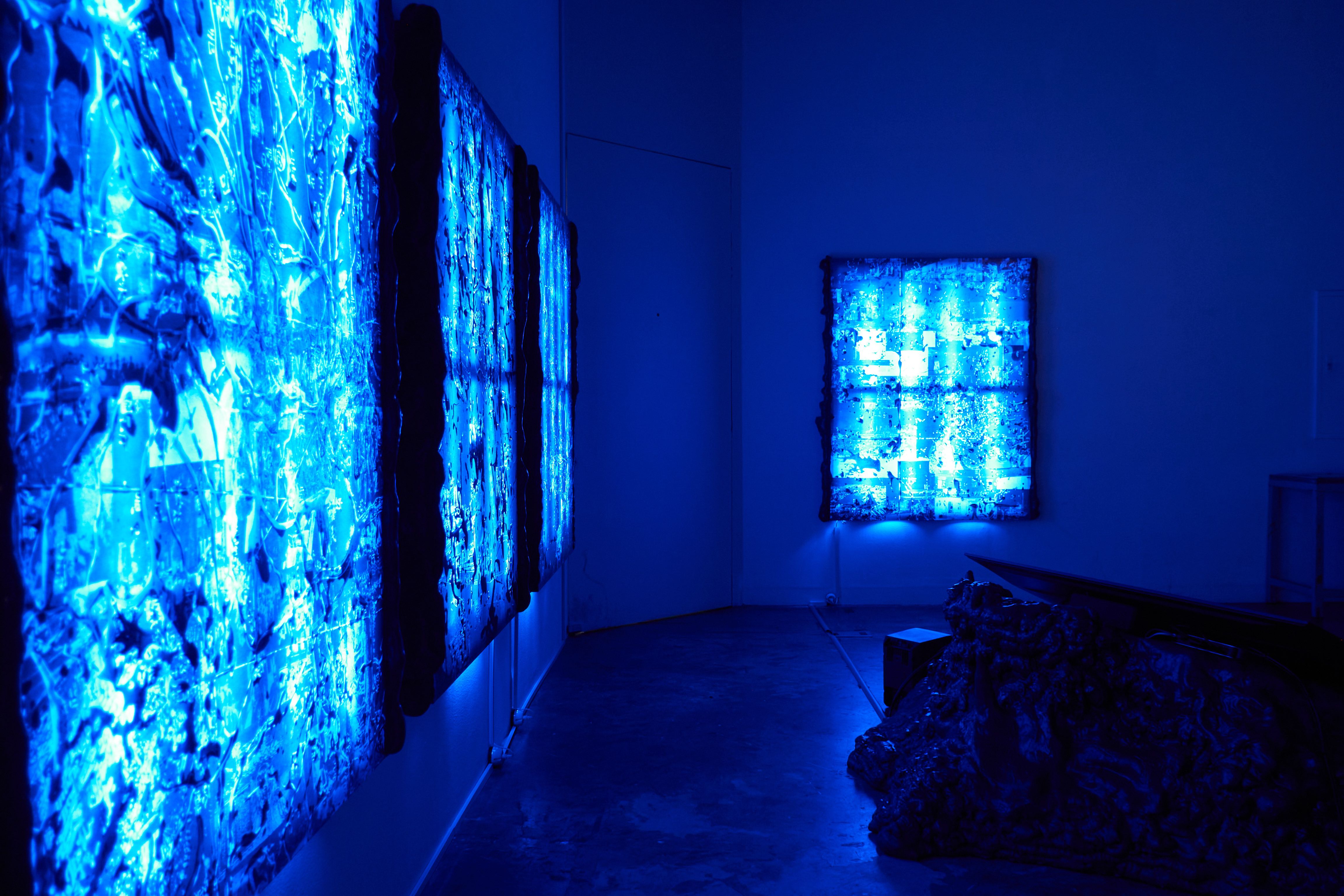 Encircling the gallery walls, Unseen Narratives (2025) is an image-archive research, reimagining historical backdrops and landscapes surrounding Casper through sibatool and resin. Faint photographic images seep through layers of reconstructed scenery: fragments of places Casper might have lived, and people he might have met. Memories of the undocumented manifest as ectoplasm—spiritual energy made tangible through material form.
