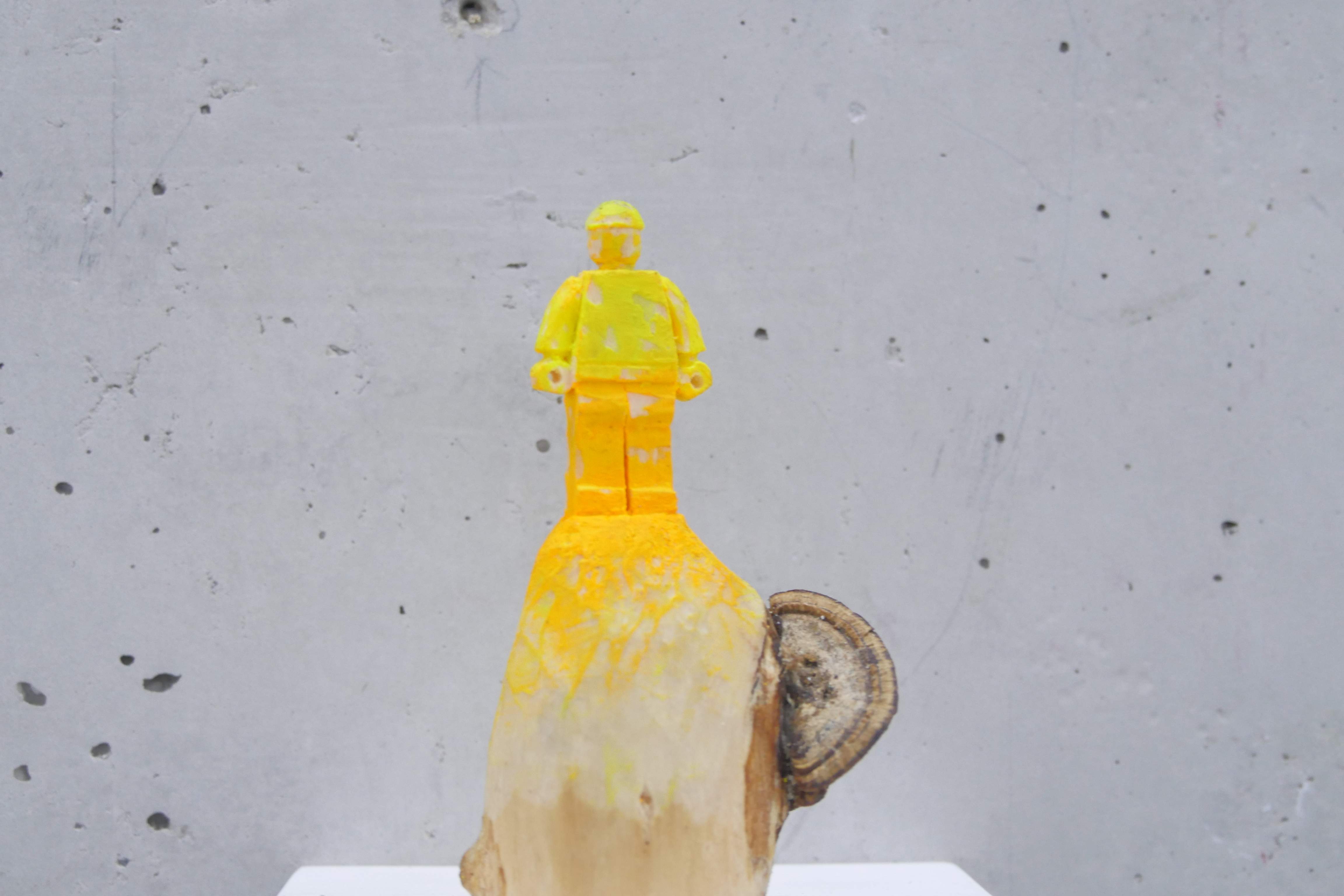 Hyeokjong Lee, L'ego with Mushroom, Carved on wood chips collected from Ilsan Lake Park, 10(h) x 5 x 3.2cm. 2024리혁종, 레’고-버섯, 일산 호수공원에서 수집한 나무토막에 조각, 10(h) x 5 x 3.2cm, 2024 -