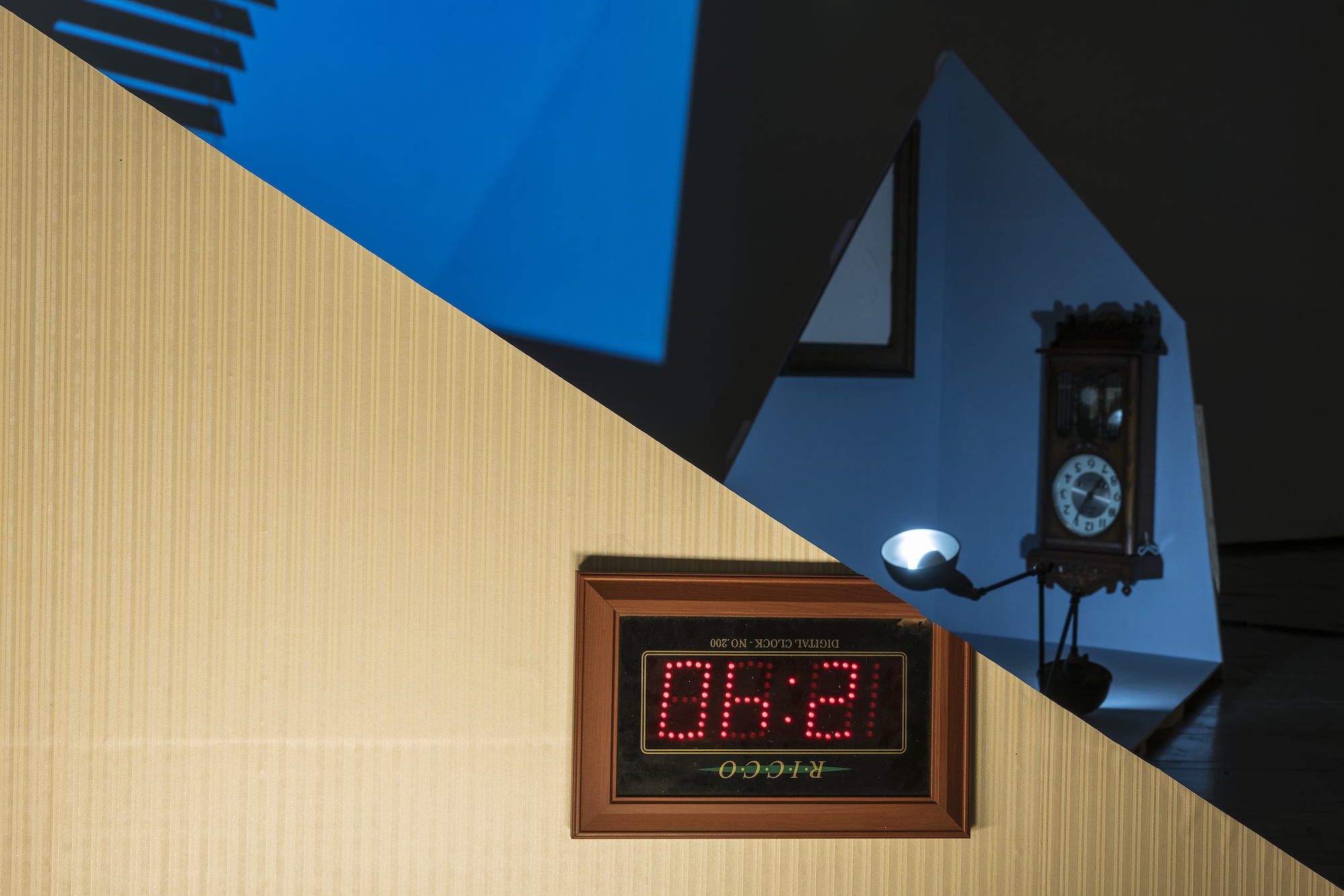 작가는 인터넷 커뮤니티를 통해 시계, 조명, 가구 등 더 이상 사용하지 않는 개인의 물건들을 수집한다. 다양한 채널을 통해 수집된 물건들은 익명으로 나열되어 가상의 공간을 만든다. 작품 ‹라비하마하마hyun추추happyj33아토마우스에뽄쑤기제트블랙병뚱껑…›에서 작가는 집이라는 거주 공간의 개념을 확장하여 4차원의 관계로 변형시킨다. 이를 다시 해체하여 벽과 바닥이 없이 천장으로 이뤄진 공간의 조각들을 전시장의 천장에 배치한다. 이 조각들에는 집의 천장임을 암시하는 벽지, 조명 등이 매달려 있고, 그 안은 수집된 물건들로 채워진다. 마치 암호처럼 읽히는 작품의 제목은 물건의 주인들이 커뮤니티에서 사용했던 인터넷 아이디의 조합이다. 개인이 아닌 불특정 다수의 경험으로 재생산된 공유 구역은 관람객에 의해 조명이 켜고 꺼지며 모두가 뒤섞이는 혼성의 공간을 만들어낸다.